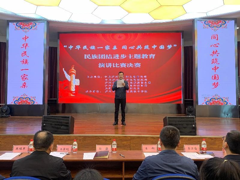 4月4日下午,江阳区委统战部联合区委宣传部、团区委、区教育和体育局在江阳职高举行“中华民族一家亲 同心共筑中国梦”民族团结进步主题教育演讲比赛。江阳区委常委、统战部部长杨勰出席活动并致辞。来自江阳区的20名中小学生参加演讲比赛。