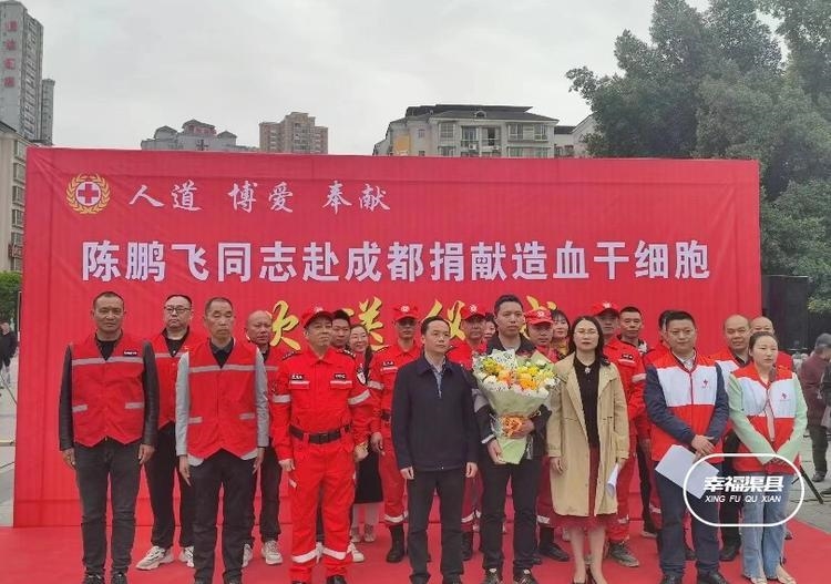 4月7日,渠县爱心志愿者协会联合渠县红十字会等组织,为造血干细胞捐献者——顺丰快递小哥陈鹏飞赴成都捐献造血干细胞举行欢送仪式。渠县县委常委、统战部部长、总工会主席刘艳萍出席仪式并讲话。渠县爱心志愿者协会、渠县红十字会、渠县总工会、渠县快递行业工会等单位部分职工参加仪式。
