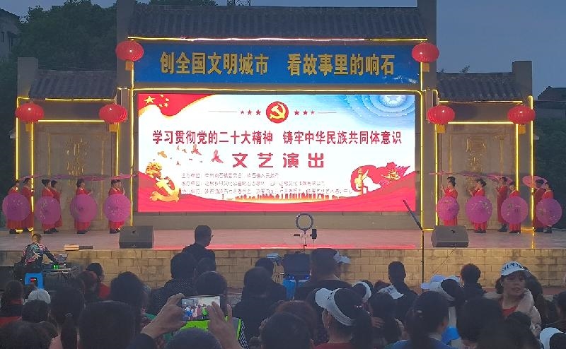 近日,在隆昌市响石镇统战活动广场上,“创全国文明城市 看故事里的响石”系列文艺演出第一期“学习贯彻党的二十大精神铸牢中华民族共同体意识”在此上演,吸引数百名群众到场观看。