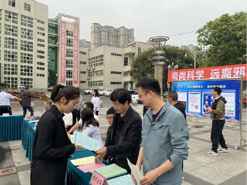 宜宾江安县委统战部副部长、县民宗局局长张先彬为群众发放宣传资料,宣传国家安全教育知识、民族宗教安全有关知识,包括我国民族政策的基本原则等,在宣传中耐心为群众普及邪教对社会的危害以及在面对邪教时的应对措施,呼吁大家崇尚科学、反对邪教、珍爱生命、关爱家庭。