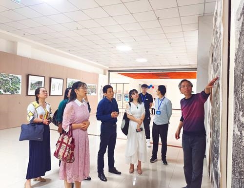 在四川民盟书画院巴中分院、民盟巴中书画艺术院,民盟德阳市委一行人“带着问题学、带着问题看”,先后参观了四川民盟书画院巴中分院国画、油画、雕塑、剪纸、书法、根雕、当代艺术等各个工作室及谯守红大师工作室,并就书画院场馆建设、机构设置、书画家选聘、活动开展、资金管理等情况进行了详细了解,特别是如何发挥好书画院的阵地作用、交流联谊等进行了深入探讨交流。