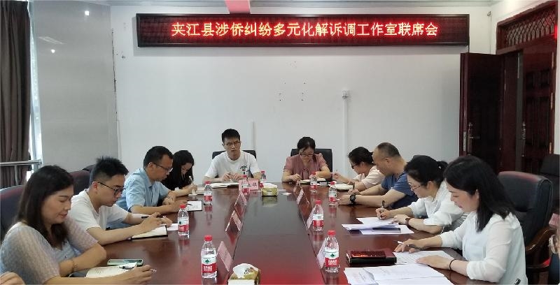 4月19日,夹江县召开2023年涉侨纠纷多元化解诉调工作联席会,县委统战部、县法院、县检察院、县经济和信息化局、县司法局、县人力资源和社会保障局、县经济合作和商务局、县侨联、部分镇(街道)参加会议。