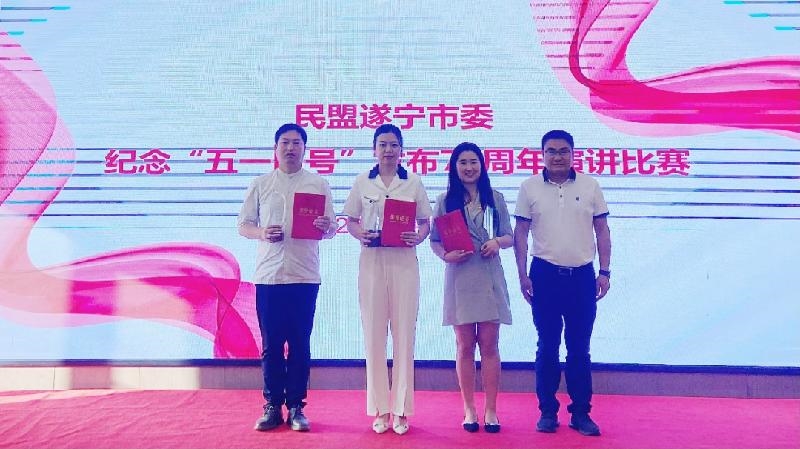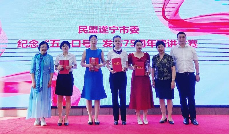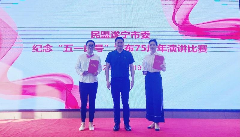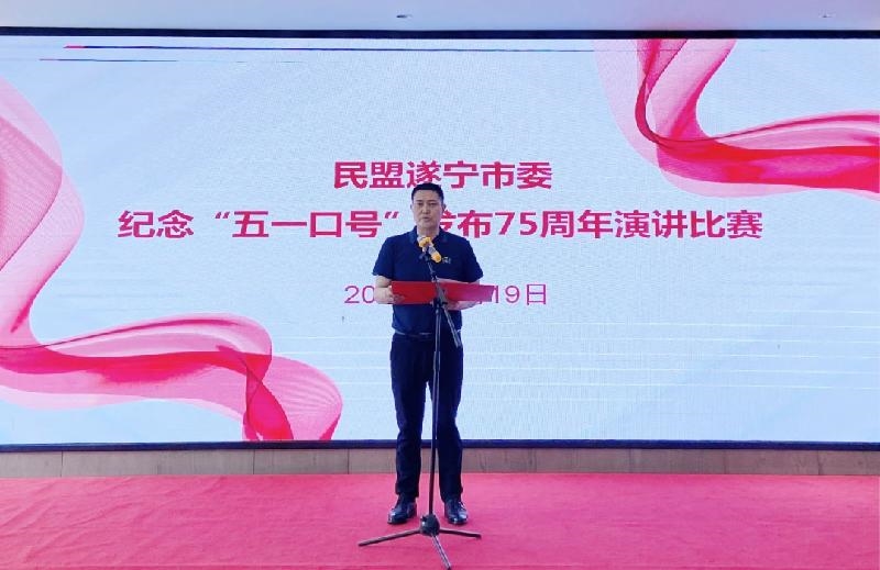 为纪念中共中央发布“五一口号”75周年,深入学习贯彻中共二十大精神,巩固主题教育成果。4月19日,民盟遂宁市委举行纪念“五一口号”发布75周年演讲比赛。民盟遂宁市委主委、市政协副主席刘建军,中共遂宁市委统战部副部长、市侨务办主任吴强出席活动,并为获奖盟员颁奖。民盟遂宁市委领导班子、机关干部、盟员代表等共计50余人参加活动。