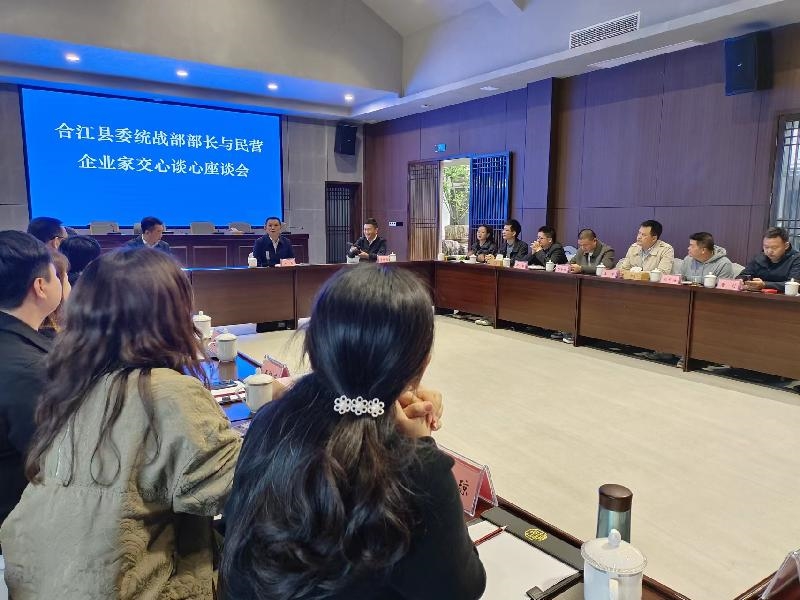 4月24日下午,合江县召开统战部部长与民营企业家交心谈心座谈会,县工商联(总商会)30余家会员企业负责人参加会议,县委常委、统战部部长王卉,县政协副主席、县工商联主席、县总商会会长曾祥海出席会议。