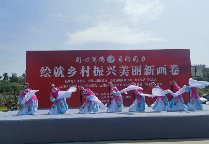 5月17日上午,达川区石梯镇场镇篮球场热闹起来,达川区委统战部联合民主党派、工商联、知联会、新联会及文化馆志愿者,开展“绘就乡村振兴美丽新画卷”暨“科技、文化、卫生、法律”四下乡活动,零距离、心贴心服务群众。