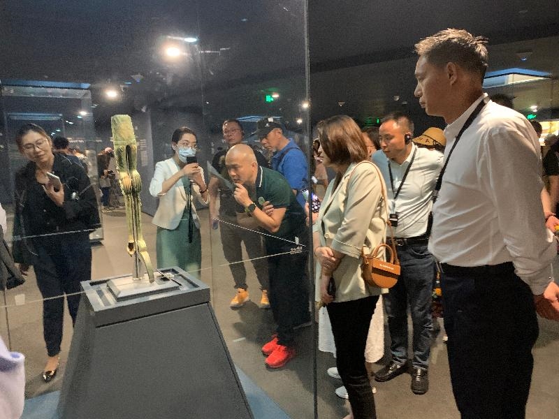 在国家文物遗址保护利用示范区——三星堆博物馆,调研组听取了三星堆博物馆陈列文物的介绍,了解了三星堆遗址发掘过程、文物修复保护、历史价值以及7月28日新馆启用后三星堆博物馆文物陈列的变化,场馆空间利用等情况。