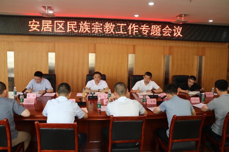 5月31日,安居区召开民族宗教工作专题会,传达学习《四川省民族团结进步条例》,安排部署2023年民族宗教工作。区委常委、统战部部长杨军出席会议并讲话,区直相关部门、各镇(街道)主要同志参加会议。