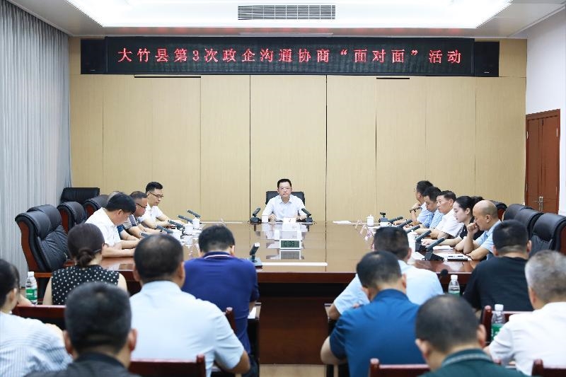 为有效提升民营经济对全县经济社会发展的贡献率,落实推进我县民营经济改革试点工作,7月24日,县委副书记、县长何长华主持开展大竹县民营企业家座谈会暨大竹县第3次政企沟通协商“面对面”活动,代表不同行业不同领域的24位民营企业家与13个部门主要负责人欢聚一堂,深入学习贯彻习近平总书记关于民营企业发展的一系列重要论述,详细听取民营企业发展情况以及对大竹经济社会发展、优化营商环境的意见建议。