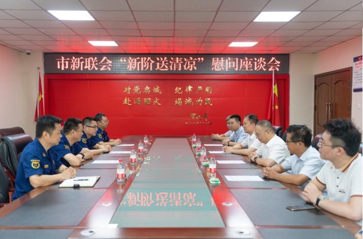 7月25日上午,达州市新联会赴达州市消防救援支队开展“暑夏送清凉、新阶在行动”慰问活动,为战斗在高温下的消防指战员送去“清凉礼包”。市委统战部副部长、市台办主任段昌林,市新联会会长周川和部分市新联会会员参加活动。