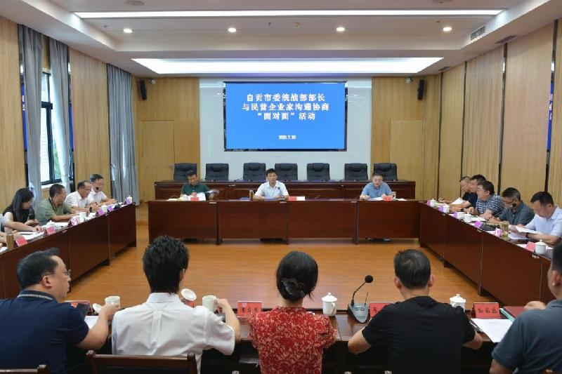 7月25日,2023年第四次自贡市委统战部部长与民营企业家沟通协商“面对面”活动在市级机关第二集中办公区举行,通过面对面沟通,倾听企业家诉求,倾力为企纾困解难。自贡市委常委、统战部部长吴进学主持活动并讲话。