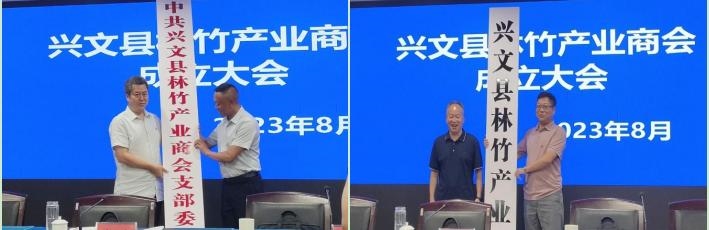 新当选的县林竹产业商会会长杨中华作了表态性发言,朱远鹏、罗国忠分别为商会党支部和商会授牌。