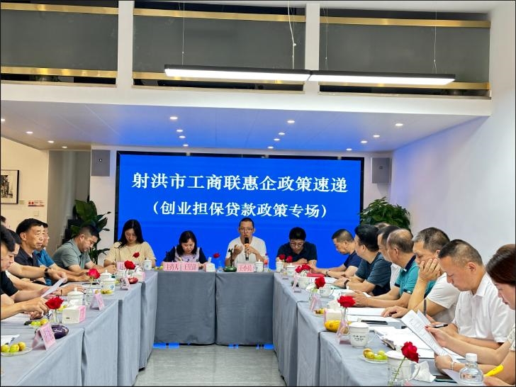 8月29日,射洪市工商联组织开展“惠企政策速递·创业担保贷款政策专场”活动,市工商联、市就业创业促进中心相关负责人及商协会会长、秘书长、办公室主任40余人参加会议。