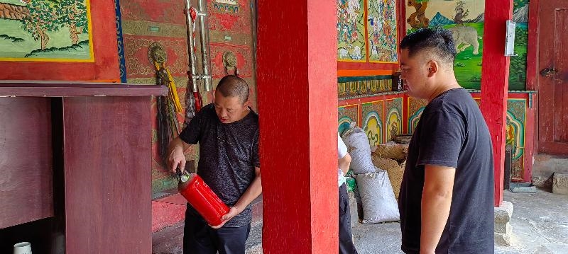开展宣传教育。充分发挥双语宣讲团、法律服务团等宣讲队伍作用,通过原文解读、以案释法等方式持续深入开展党的二十大精神、习近平总书记来川视察重要指示精神和党的宗教政策、相关法律法规的宣传解读,切实提高僧人知法、尊法、守法、用法意识,夯实团结奋斗的思想根基,积极引导藏传佛教与社会主义社会相适应。 排查隐患风险。成立由统战、民宗、公安、住建、卫健、消防等部门组成的寺庙风险隐患排查整治工作小组,深入全县各宗教活动场所,全覆盖开展寺庙消防、防汛减灾、建筑安全、食品药品、交通出行、网络反诈、卫生防疫等方面的隐患排查整治工作,形成问题台账,制定整改措施,明确整改时限逐一销号,维护全县宗教领域平安稳定。