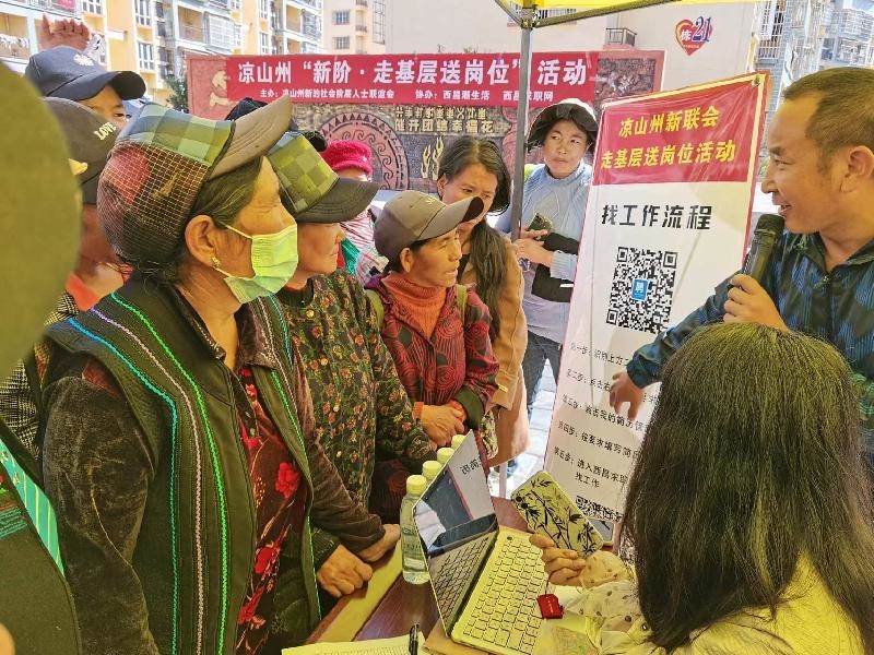 10月18日,由州委统战部携手州新联会举办的“新阶走基层.送岗位”活动在喜德县彝欣社区举行。
