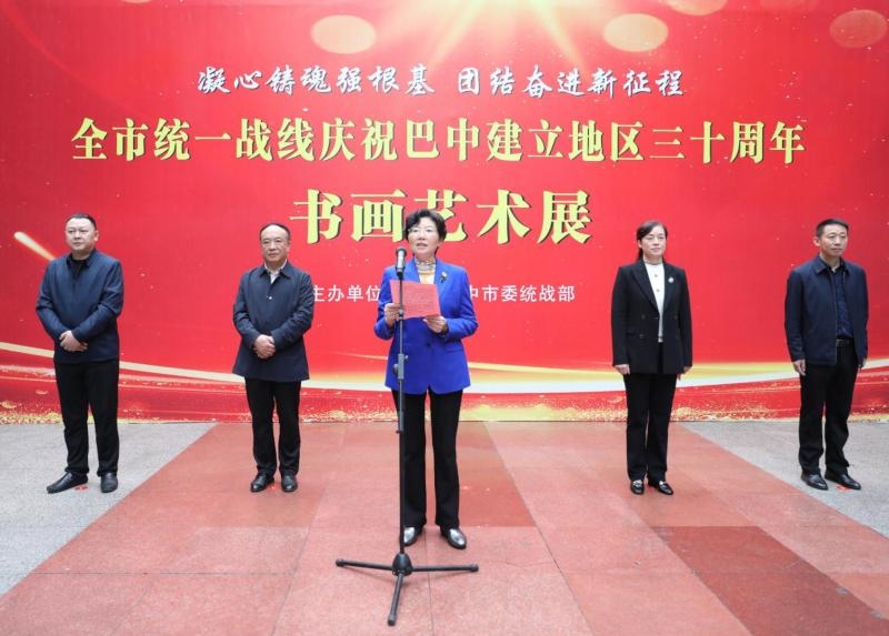 11月3日,“凝心铸魂强根基 团结奋进新征程”全市统一战线庆祝巴中建立地区三十周年书画艺术展在巴人广场正式启动。市委常委、统战部部长温奇志出席启动仪式并讲话,市委统战部常务副部长杨述兰主持。