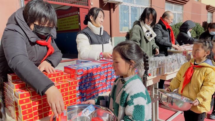 项目组还为孩子们带来了基础卫生包,里面包含了不锈钢脸盆、洗衣粉、肥皂、药皂、牙膏、牙刷、毛巾、洗发水等物品,同时为5、6年级的女同学带去了豆蔻信使护蕾包,里面包含了木梳、镜子、发箍、皮筋、卫生巾、文件夹和女童包装袋。他们表示希望通过这样小小的努力,帮助偏远贫困孩子们提高健康意识,培养良好、健康的生活习惯。