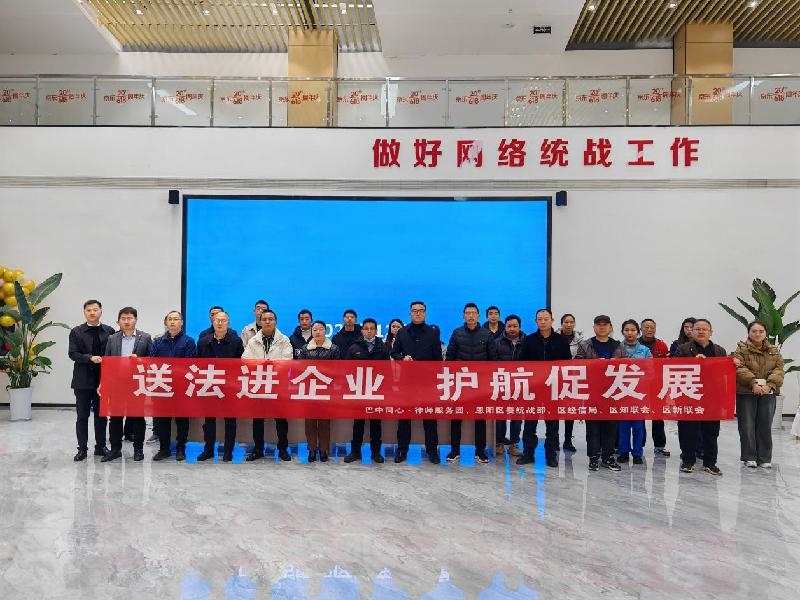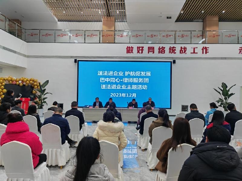 为切实增强民营企业法治意识,提升依法治企水平,12月4日,巴中同心·律师服务团到恩阳区开展送法进企业活动。恩阳区委统战部常务副部长马龙辉,恩阳古镇管委会应急管理科科长、区知联会副会长何志勇出席活动。全区50余家工业企业负责人参加了活动。