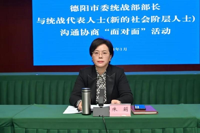 1月5日,德阳市委统战部部长与统战代表人士(新的社会阶层人士)沟通协商“面对面”活动举行。市委常委、统战部部长朱莉主持会议并讲话。她强调,要深入学习习近平总书记关于新的社会阶层人士统战工作的重要论述,坚持信任尊重、团结引导、组织起来、发挥作用的工作思路,充分发挥新的社会阶层人士在奋力谱写中国式现代化德阳新篇章中的积极作用。
