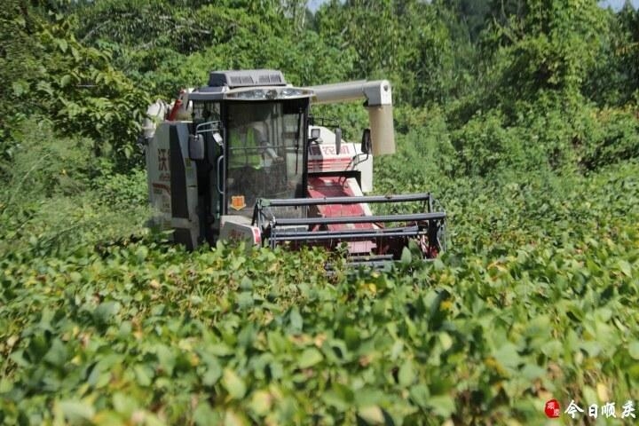 (农机手张乾文进行大豆收割作业)