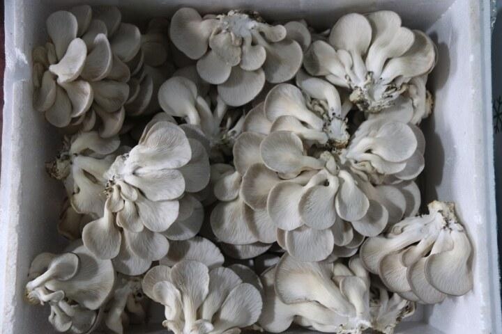 (新复乡天生桥村蘑菇种植园采摘装箱后的平菇)