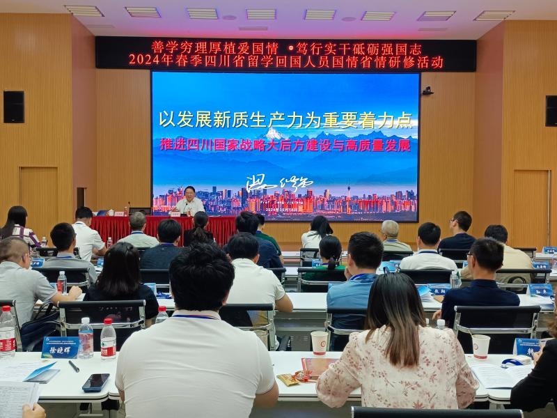 启动仪式在介绍了参与活动人员、活动安排、纪律要求和举行授旗仪式后,邀请国务院特殊津贴专家、西南财经大学教授汤继强作了题为《以发展新质生产力发重要着力点 推进四川国家战略大后方建设与高质量发展》专题讲座。汤继强从客观世界的变化、认识世界的变化、底层逻辑的变化,世界局势、中国实力、四川位势的变化等方面解读了习近平总书记的经济思想。活动希望广大留学人才留学回国人员弘扬留学报国光荣传统,立足本职岗位,发挥专业专长,把爱国之情、强国之志、报国之行统一起来,深刻领会新质生产力的科学内涵,积极融入建设社会主义现代化新四川的伟大实践中,为全面建设社会主义现代化新四川汇聚更多海归力量。