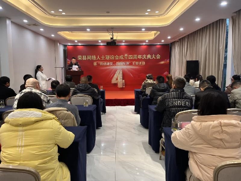 近日,荣县网络人士联谊会举行以“网络融荣 共创辉煌”为主题的成立四周年庆典大会。县委统战部、县商务局、各友好协会代表及网联会会员近百人参加活动。
