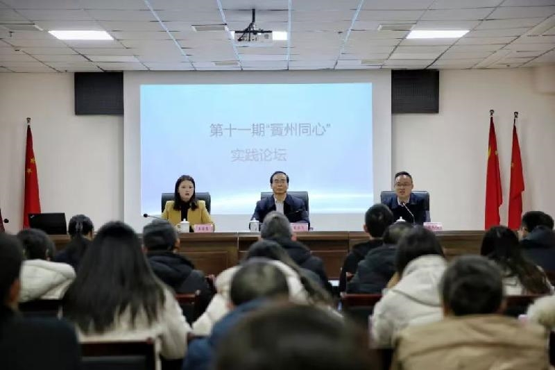 12月19日,由中共广安市委统战部主办,民盟广安市委会承办的第十一期“賨州同心”实践论坛在广安佳霖建工集团会议室成功举办。市委统战部、市级各民主党派40余名代表人士齐聚一堂,通过参观、讲座、交流等形式,共同探索民主党派如何助力地方传统文化发展。民盟广安市委会主委、市人大常委会副主任贺宗飞,市委统战部副部长、市工商联党组书记朱大均出席活动。民盟市委会秘书长王莹莹主持活动。