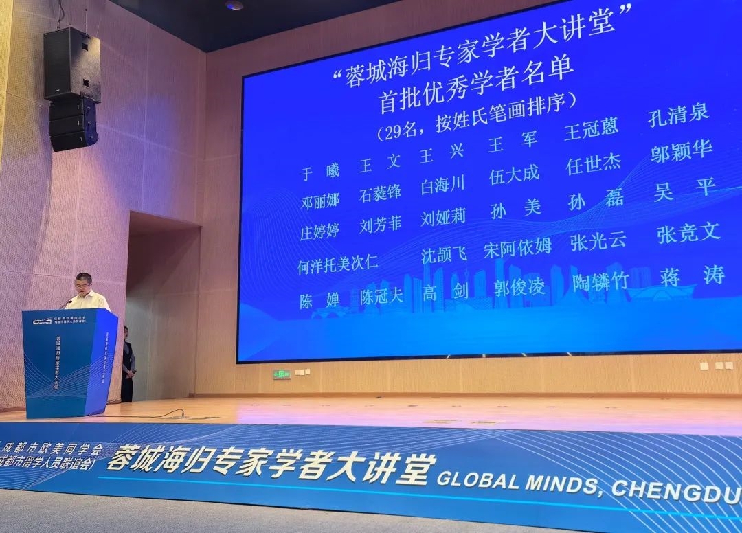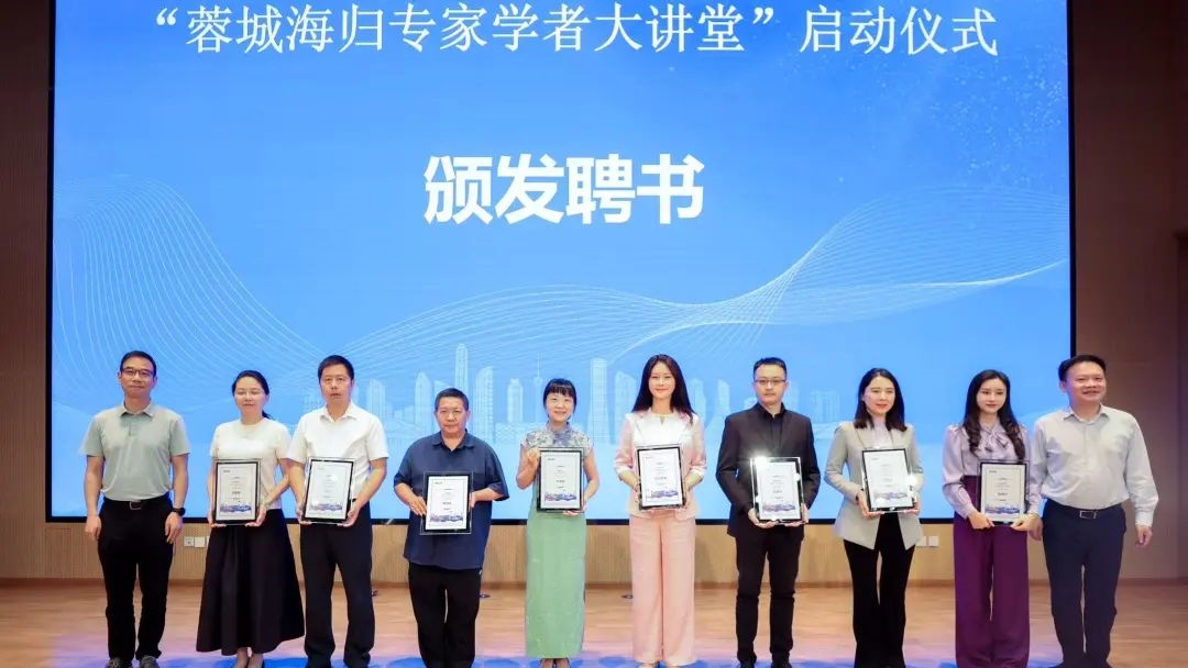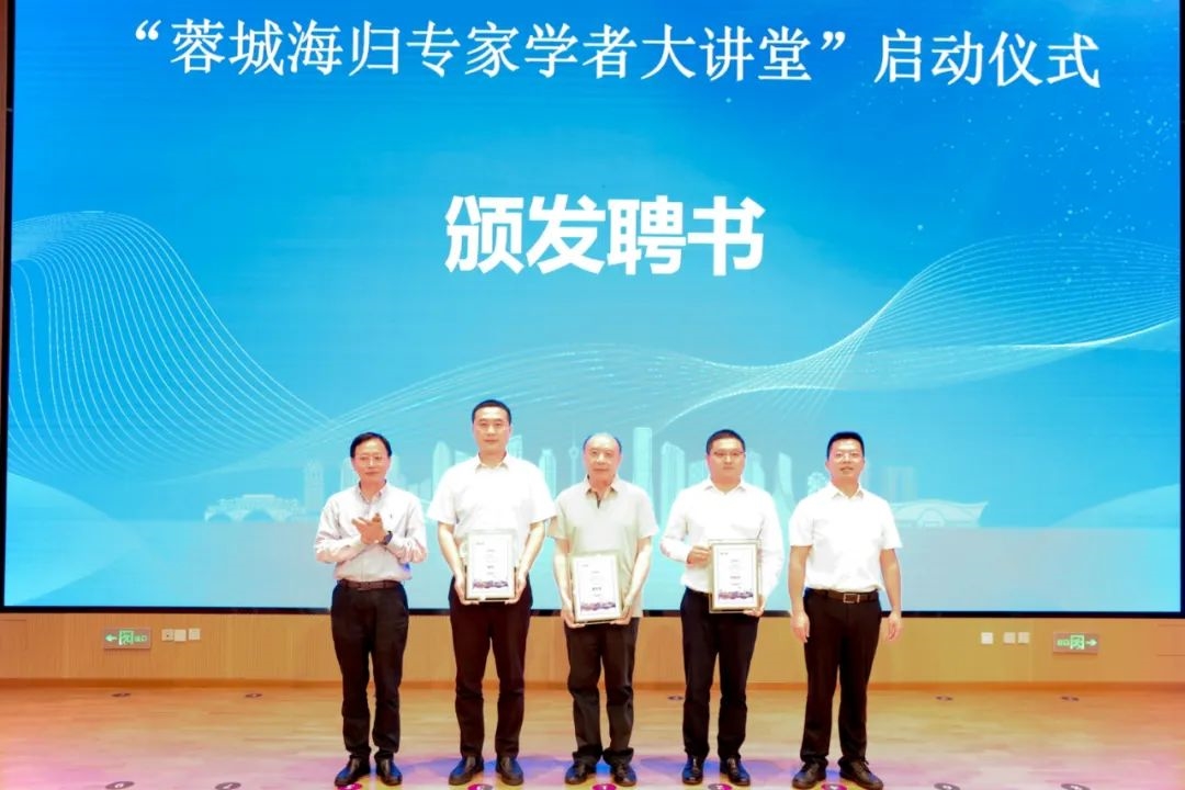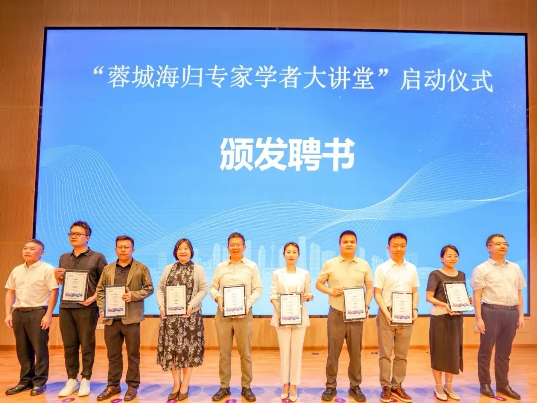 启动仪式上,与会领导和市欧美同学会会长会班子成员为首批“蓉城海归专家学者大讲堂”专家学者代表颁发了聘书。