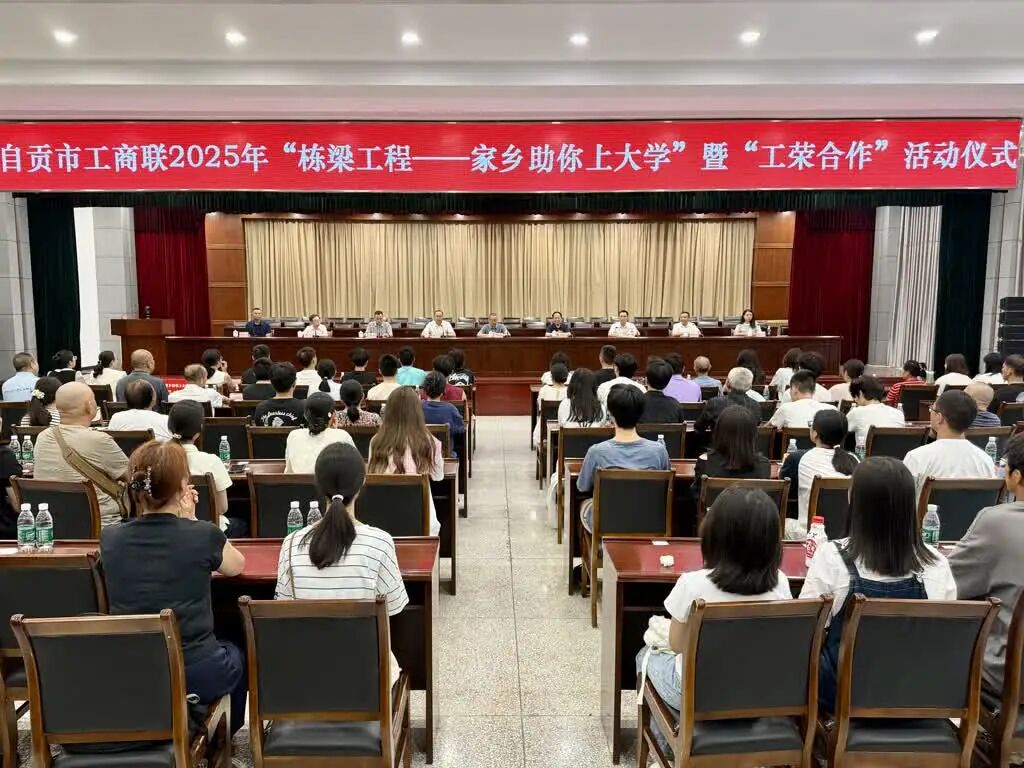 8月26日,自贡市2025年“栋梁工程——家乡助你上大学”暨“工荣合作”活动仪式在荣县举行,市扶贫“两会”党委书记、会长钟长安,市工商联主席、总商会会长杨荣春,市委统战部副部长、市工商联党组书记吴玺,县委常委、统战部部长、河口镇党委书记朱军,以及爱心企业家代表、相关部门负责人、受捐助学生和家长等参加。