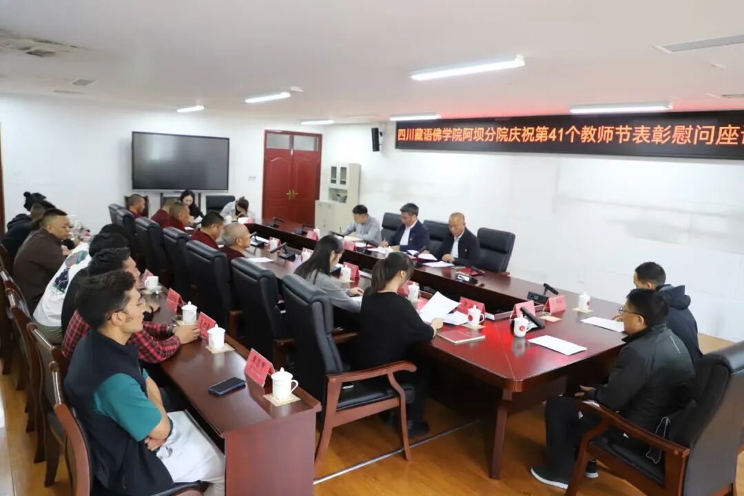 9月10日,四川藏语佛学院阿坝分院庆祝第41个教师节表扬慰问座谈会在学术报告厅会议室举行。全体经师、教师及科室负责人参加。