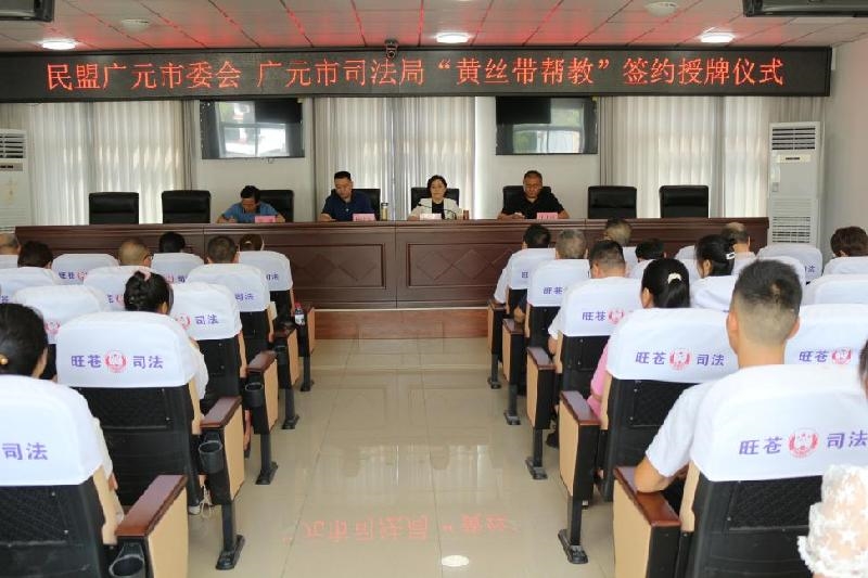 为进一步贯彻落实民盟中央、司法部要求,深入推进“黄丝带帮教”工作,促进特殊人群顺利回归社会,助力平安广元建设,7月25日,民盟广元市委会、广元市司法局举行 “黄丝带帮教”签约授牌仪式。民盟广元市委会专职副主委何炜,民盟广元市委会副主委、旺苍县政协教科医卫体育委主任李勇,广元市司法局党组成员、副局长杨建军出席仪式。旺苍县司法局党组书记、局长王大中主持仪式。