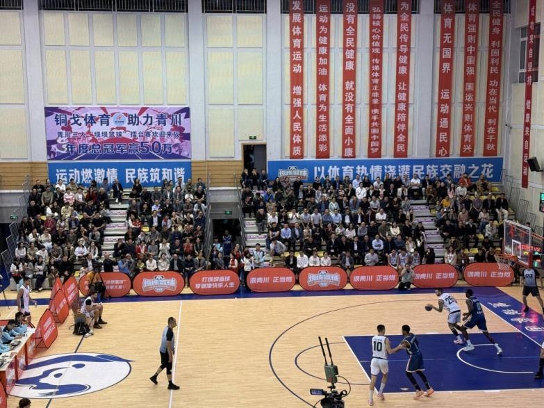 一场场扣人心弦的“三人”坝坝篮球总决赛激情上演。这项深受各族青年喜爱的运动,被评为四川省篮球标杆赛事、省十佳全民健身品牌赛事,不仅是速度与力量的比拼,更是团队协作与友谊的桥梁,深刻践行着“同运动·一家亲”。赛场上,球员们默契配合、挥洒汗水;赛场下,观众呐喊助威、其乐融融,展现了各族儿女像石榴籽一样紧密相连、共同拼搏的精神风貌。总冠军赛开幕式于9月23日晚在青川县城篮球公园举行,有璀璨夺目的灯光秀、浪漫震撼的烟花秀、科技感与传统文化碰撞的机器人+非遗表演、梦幻唯美的无人机表演。