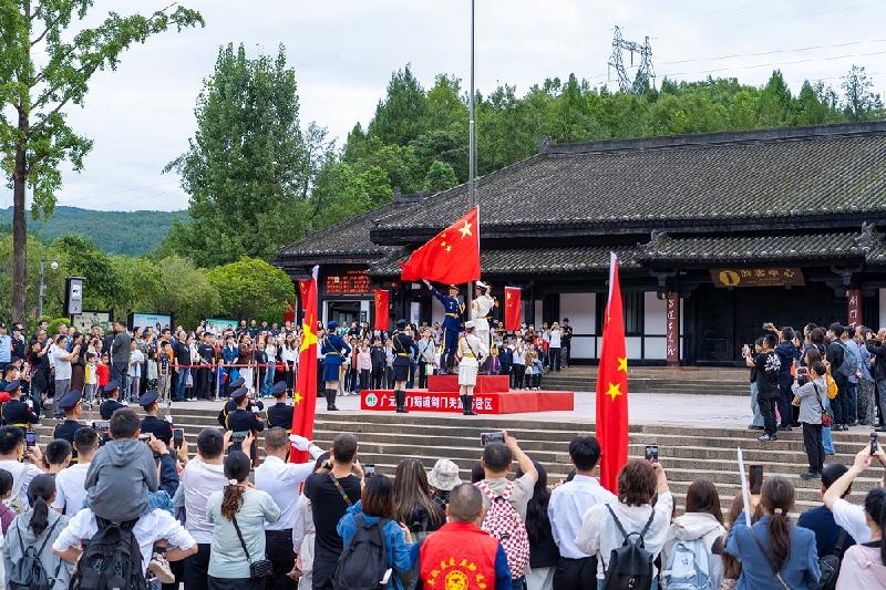 以“国旗耀剑门”为开篇,10月1日至5日,每日清晨,一场庄严肃穆的升旗仪式在北门游客中心广场准时举行。当国旗护卫队迈着铿锵有力的步伐入场,当《义勇军进行曲》激昂奏响,响彻山谷,各民族游客一同肃立凝视五星红旗随朝阳冉冉升起,齐声高唱雄壮的国歌,观看仪仗队员的飒爽英姿,成为凝聚各族人心的精神坐标。这一刻,对伟大祖国的认同感和归属感在每个人心中激荡。升旗仪式不仅是一次爱国主义教育,更是一次生动的实践课,让“中华民族一家亲,同心共筑中国梦”的种子深植人心,有力凝聚了休戚与共、荣辱与共、生死与共、命运与共的中华民族共同体意识。
