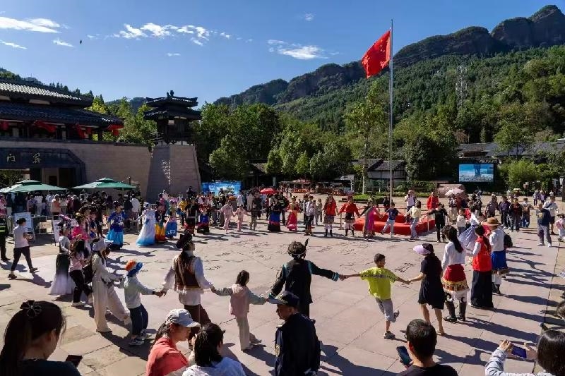 婀娜的舞姿展现了不同民族的独特风情,绚丽的服饰诉说着中华文化的博大精深。活动现场,各族演员与游客热情互动,成了一个各民族文化交流互鉴、情感交融的盛大平台。这不仅是一场视听盛宴,更是一座沟通心灵的桥梁,让各族群众在欣赏与参与中增进了解、加深情谊,深刻体会到中华文化是各民族文化的集大成者,感受到了中华大家庭的温暖与包容。