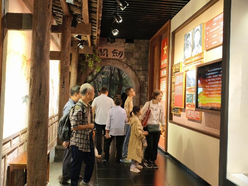广场中央,红军攻克剑门关纪念碑巍然矗立,碑身“红军攻克剑门关纪念碑”九个鎏金大字在阳光下熠熠生辉。家长们牵着孩子的手,驻足聆听讲解员讲述1935年红军激战剑门关的英雄事迹,孩子们眼中满是崇敬。走进红军攻克剑门关纪念馆,珍贵的文物与生动的场景再现吸引着孩子们的目光。在文物展区,家长们耐心向孩子介绍各族群众与红军鱼水相依的历史,在多媒体互动屏前,孩子们争相点播红色故事。从纪念碑前的肃穆瞻仰,到纪念馆内的沉浸式学习,再到亲子间的红色故事分享,剑门关红军广场以独特的红色底蕴,让来自不同民族的家庭在国庆期间读懂革命历史中的团结力量,将爱国主义的种子深深播撒在孩子们心中。