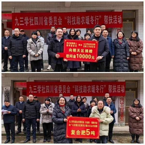 调研组一行在大尖山村村委会开展了“科技助农暖冬行”帮扶活动;社眉山市委会联合爱心企业四川金象。赛瑞农业捐赠复合肥5吨并开展农技指导;省残疾人福利基金会捐赠残疾人慰问金1万元。同时社省委、社广元市委分别向驻村干部发放慰问金。