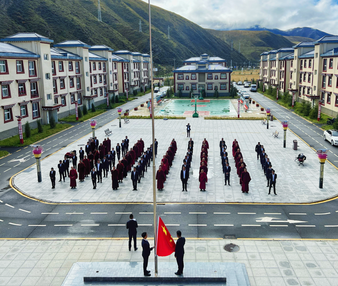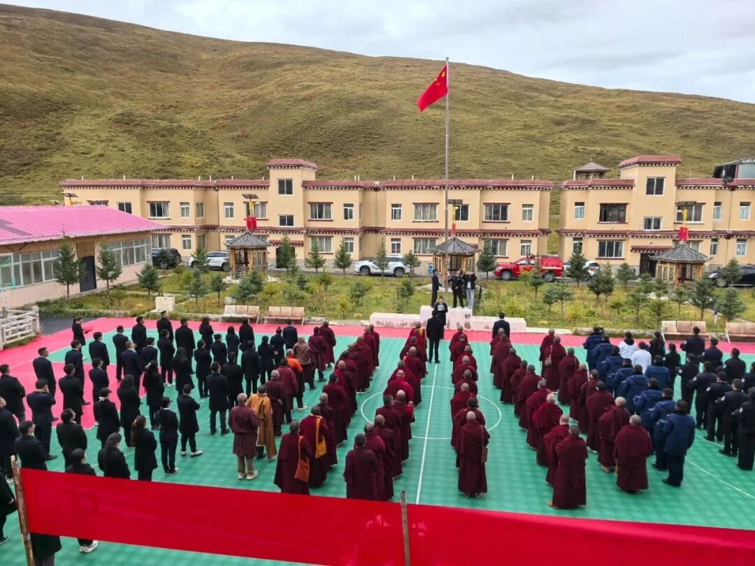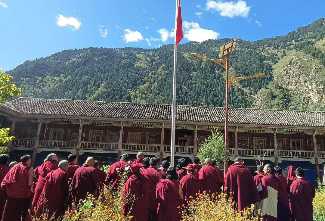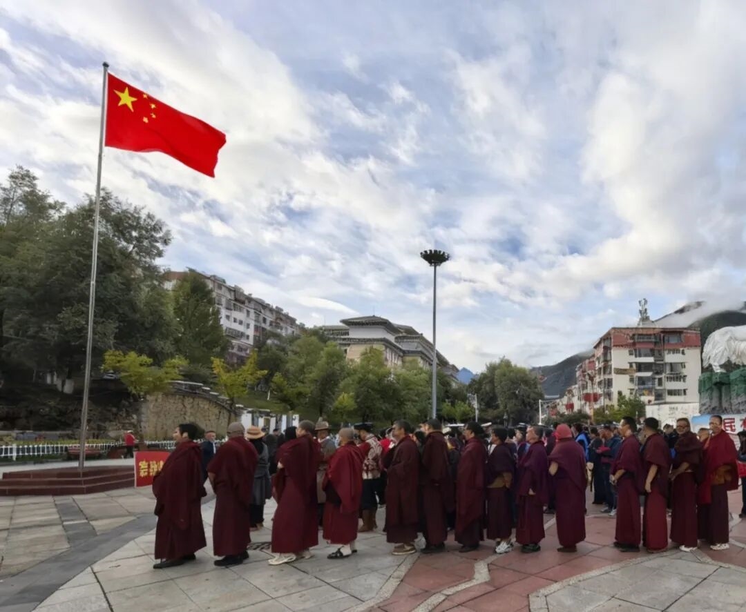 甘孜县组织45个宗教活动场所同步举行升旗仪式。各新型寺管会(局)全体干部、各乡镇寺管所所长、统战委员、专职干部和僧尼共同庆祝新中国成立76周年华诞,以最真挚的爱国情感表达对祖国的崇高敬意和衷心祝愿。
