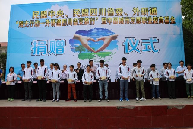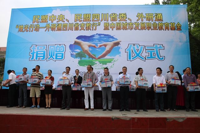 近日,民盟中央、民盟四川省委、外研通“烛光行动—外研通四川省支教行”暨中国城市发展职业教育基金捐赠仪式在遂宁举行。全国人大常委、民盟中央副主席龙庄伟,四川省政协副主席、民盟四川省委主委赵振铣,民盟中央社会服务部部长郭勇出席捐赠仪式。