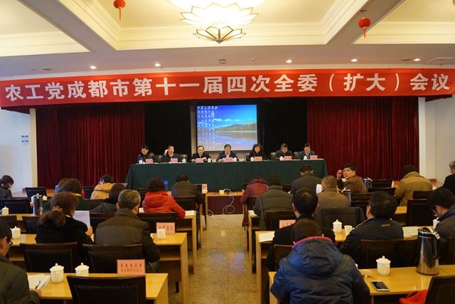 中国农工民主党成都市第十一届委员会第四次全体会议于2015年1月5日召开。全会认真学习贯彻中共十八大、十八届四中全会精神、习近平总书记系列讲话精神以及省委书记王东明重要讲话精神和中共成都市十二届四次会议精神,听取并审议了农工党成都市委主委侯一平同志代表农工党成都市第十一届常委会向全委(扩大)会议所作的2014年工作报告。全市50多名市委委员和支部主委参加了会议。