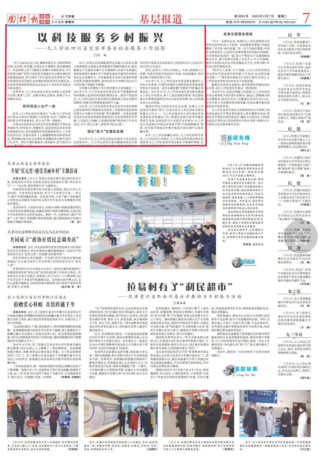 2022年,九三学社宜宾市委会先后多次组织到屏山县吴家坝村开展脱贫攻坚回访、“巩固脱贫攻坚成果实现与乡村振兴有效衔接”等专题调研。市委会还联合宜宾市农科院果蔬科技服务团,先后到翠屏区牟坪镇、三江新区江南镇、江安县阳春镇开展科技下乡系列活动,不只“授之以鱼”,更坚持“授之以渔”。
