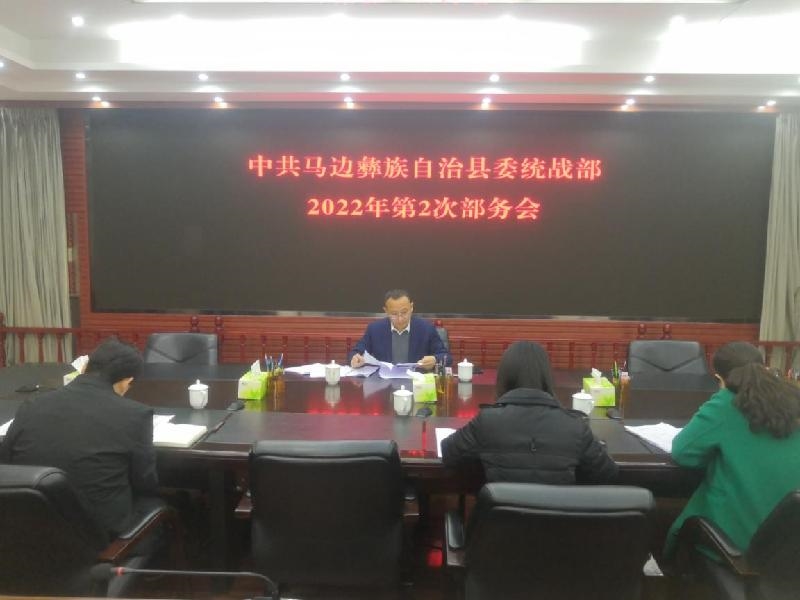 近日,马边县委统战部召开部务会,传达学习了全国、全省、全市统战部长会议精神,研究贯彻落实意见。