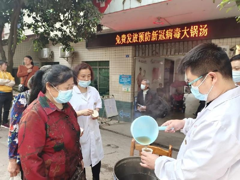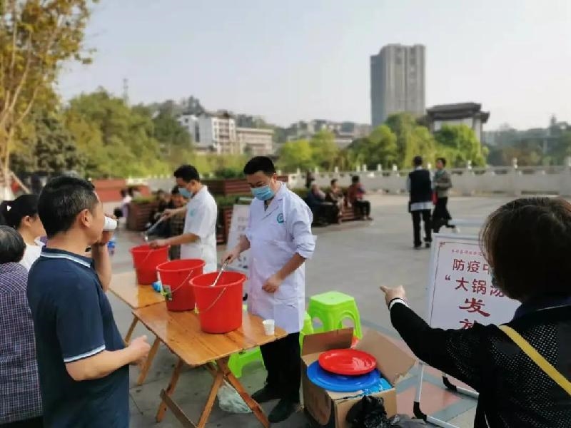 近期,全国疫情形势严峻,为更好地防控疫情,保障广大群众身体健康,充分发挥中医药在疾病预防等方面的独特作用。井研县卫健局按照县上的统一安排和部署,参照四川省中医药管理局发布的《四川省新冠肺炎中药预防建议方案(修订)》,拟定了中药“大锅汤”处方。县知联会卫健系统人员自发组成志愿服务队,在县体育场附近,向过往群众提供普通人群中药防疫“大锅汤”服务。