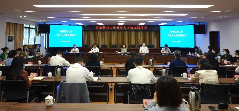 4月11日,中共乐山市委召开疫情防控工作党外人士情况通报会,向各民主党派市委、市工商联、无党派代表人士、党外知识分子代表等通报了当前疫情形势和全市疫情防控工作情况,并听取意见建议。市委常委、统战部部长郭捷主持会议并讲话。