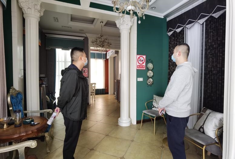 督导组一行先后走访了名宅装饰、优丽雅特窗帘、立邦漆等商会会员企业,认真听取企业负责人关于企业运营、防控物资配备、安全制度落实等情况汇报,了解查看安全警示标语的张贴情况,并详细询问是否有高、中风险地区回来人员等事宜。