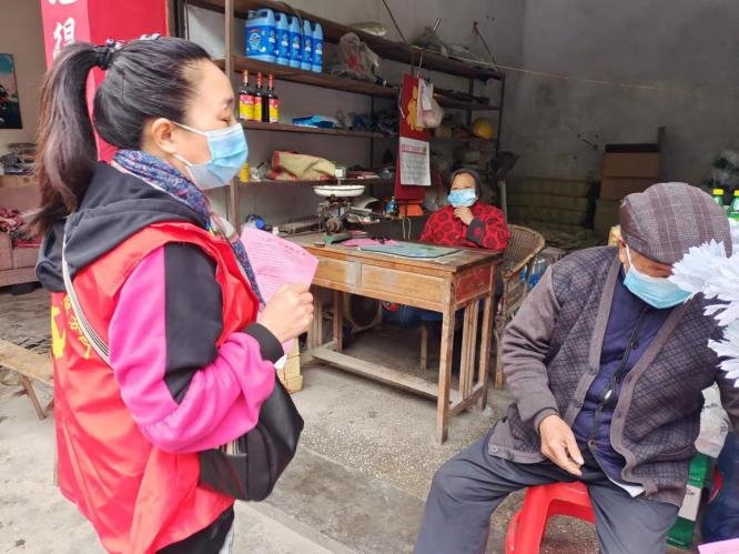 到小商铺进行防疫政策宣讲