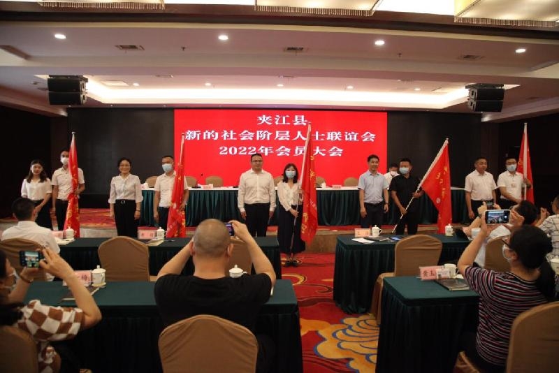为进一步抓好新的社会阶层人士统战工作,加强新阶人士队伍建设,凝聚全县新阶人士智慧力量,近日,夹江县召开新的社会阶层人士联谊会2022年会员大会,并为新联会法律服务团、蓝天救援队服务团、心理咨询服务团、乡村振兴服务团、电商服务团“五大服务团”授旗。
