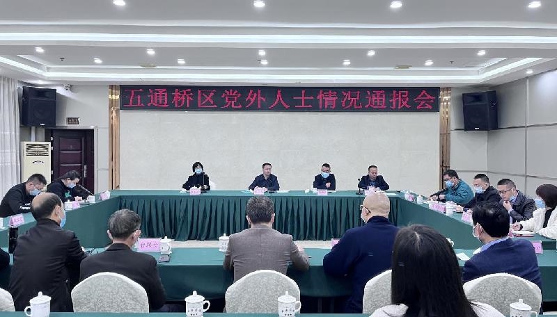 11月4日,五通桥区召开党外人士情况通报会,向各民主党派基层组织、区工商联负责人和无党派人士代表,港澳台侨界、民族宗教界代表人士、民营经济人士代表、新的社会阶层人士代表等通报中共二十大精神。区委常委、统战部部长陶吉春主持会议并讲话。