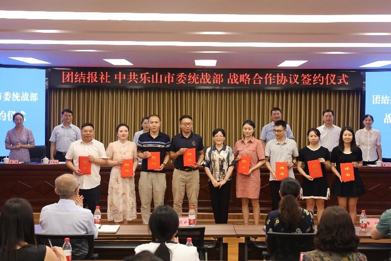 7月21日,团结报社与市委统战部签署战略合作协议。团结报社总编辑汪业芬,市委常委、统战部部长席代金出席签约仪式并讲话,民革乐山市委主委周丹妮出席并主持仪式。团结报社总编辑助理、专题部主任邵宏华,省委统战部宣传文化处副处长黄伊,民革四川省委宣传处副处长雍禹,市委统战部常务副部长李建伦参加仪式。