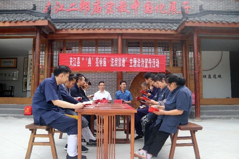 为深化法治宣传教育,增强宗教界人士和信教群众法治观念,近日,夹江县民宗局联合县司法局,组织律师走进甘江镇二郎庙,开展“‘典’亮寺庙 法润宗教”主题法治宣传活动。