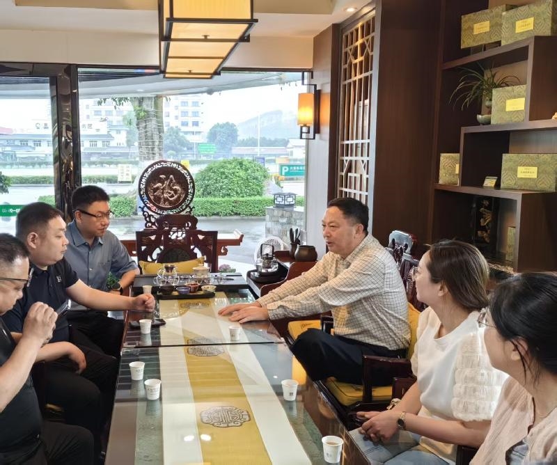 在夹江天福观光茶园有限公司,调研组同企业负责人深入交流,向企业负责人宣传了《民营经济促进法》,传达县委“2+4+2”工作推进机制以及支持民营经济发展各类政策,增强台企发展信心。在交流中,调研组详细了解企业对研学旅游等方面的发展规划以及对优化本地营商环境的建议,鼓励企业继续为促进两岸经贸合作和人文交流作贡献。